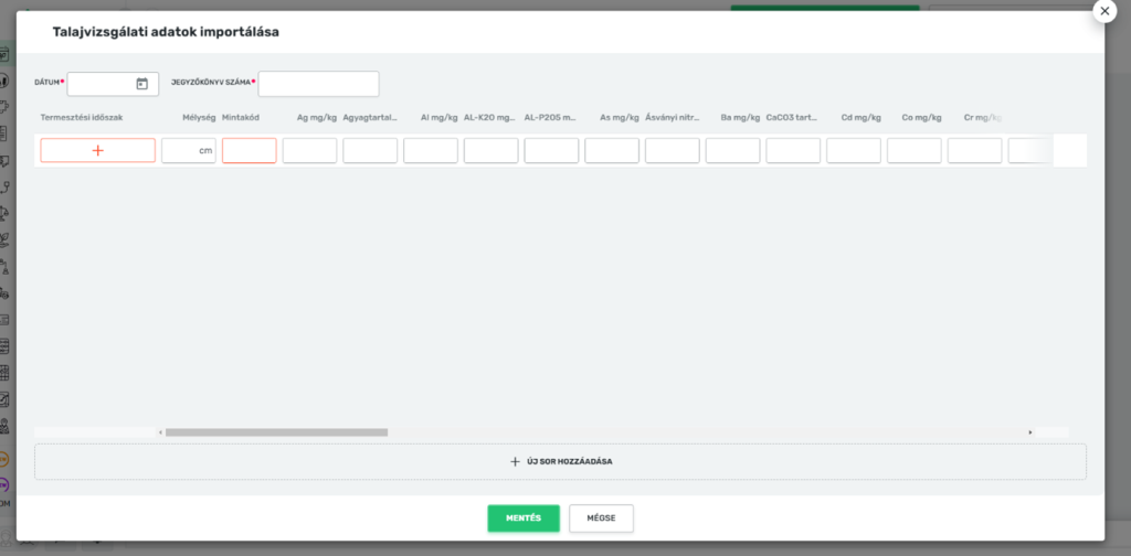 Cégenként van lehetőség csoportos adatrögzítésre. A feltölteni kívánt Excel oszlopainak abba a sorrendbe kell szerepelni, ahogy a talajvizsgálat interface testreszabása felületen be lett állítva az oszlopsorrend.