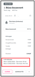 A „Termesztési időszakok/Termesztési időszakok kezelése” felületen egyéni nézetben beválasztható az „összevonással érintett” oszlop, ahol az összevonással érintett termesztési időszakokat pipa jelzi. Az összevonással érintett termesztési időszakok esetében megjelenítésre kerülnek az előd termesztési időszakok: