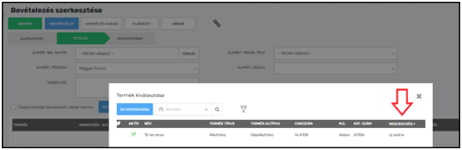 A „Készlet/Terméktörzs/Termék szerkesztése/Egyéb adatok” fülön a beírt termékre vonatkozó „Megjegyzés”, megjelenik a „Termék kiválasztása” ablakokban, egy új oszlopban. Itt szűrni és keresni is lehet ezekre a megjegyzésekre.