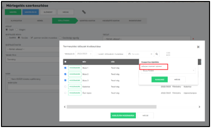Mérlegelés során ezután időszak csoport szerinti csoportos kijelölést is alkalmazhatunk. Így a rendszer az időszak csoporthoz tartozó termesztési időszakokat jelöli ki, s azokra rögzíti a bevételezést/hozamot.