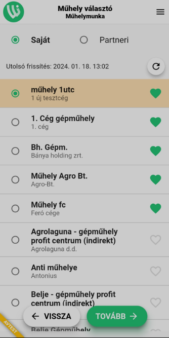 Works applikációban a munkaművelet szerkesztésekor műhelyre és gazdasági egységre is használható a kedvencek funkció.