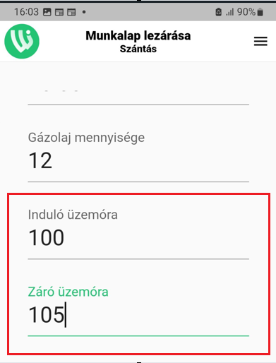 – When the worksheet is closed and the closing engine hour is recorded, the interface also shows the starting engine hour.