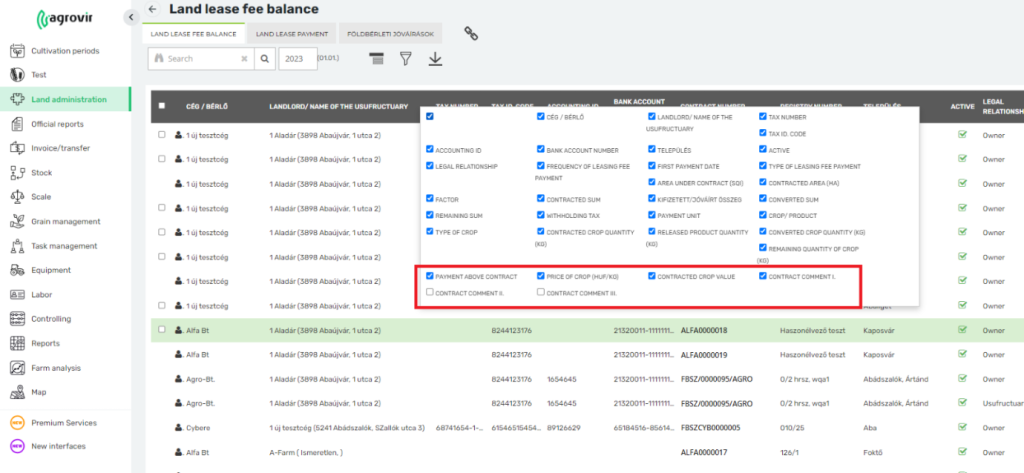 New information has been added to the “Land lease clearing sheet” (#6.38), if the land lease pricing scheme includes a crop, the unit price of this crop is also shown.