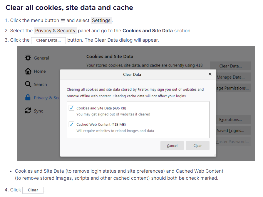 Deleting cookies stored by browsers