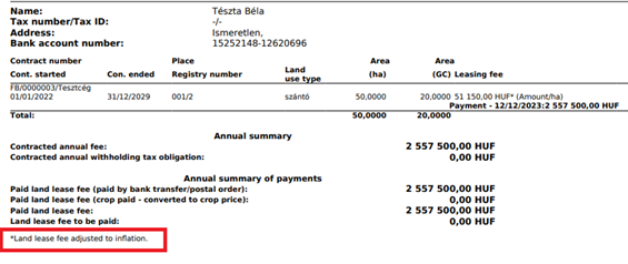 This report will now show the land lease cost increased by inflation instead of the original contract amount if the lease is paid with inflation accounting (fee adjustment based on inflation).