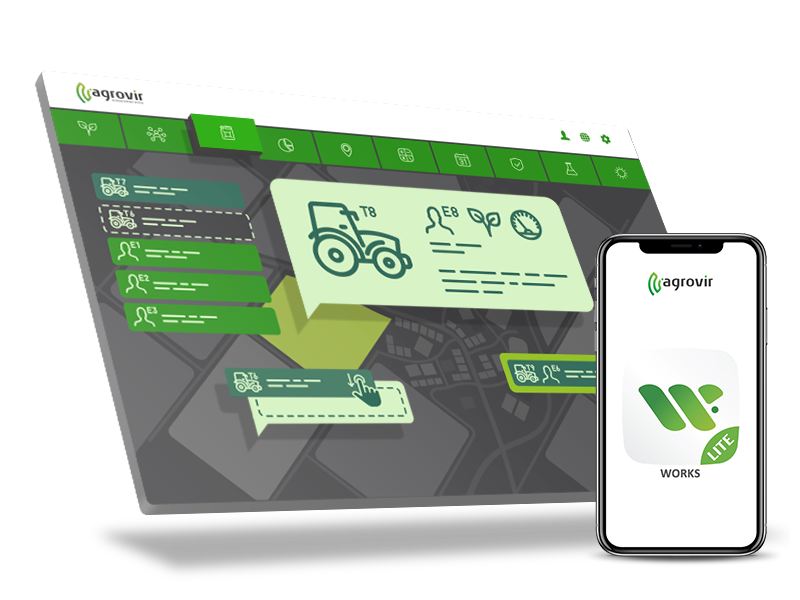 Munkavállalók (traktorosok, gépkezelők) napi tevékenységüket könnyedén rögzítik az általuk használt eszközön (okostelefon, tablet), majd ezek az adatok automatikusan bekerülnek az AgroVIR rendszerébe. A keletkező tényadatokból – ellenőrzést követően – segédüzemi teljesítményekkel rendelkező munkaművelet és e–munkalap hozható létre pár gombnyomással.