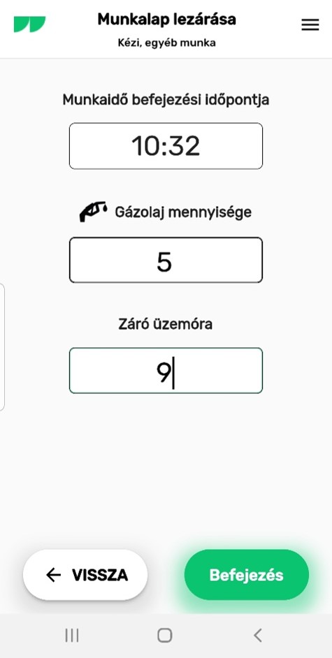 A munkalap lezárása gomb segítségével véglegesítjük és az AgroVIR rendszerbe küldjük a befejezett munkavégzést.