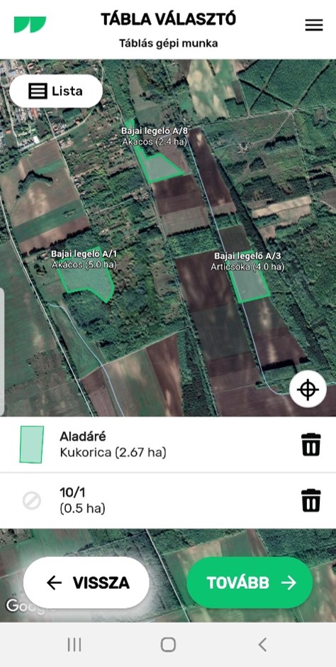Lista nézetből kiválasztjuk a művelt táblákat (termesztési időszakokat).